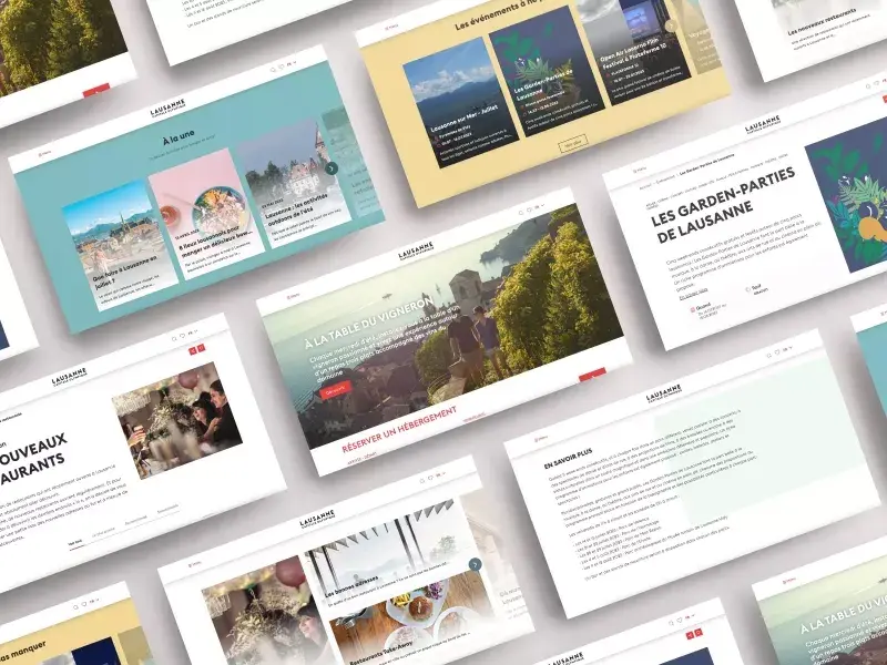 Après une analyse approfondie des besoins avec l'équipe de Lausanne Tourisme, nous avons proposé une refonte complète du site, en mettant l'accent sur un design moderne, des fonctionnalités innovantes et une plateforme technique ouverte et évolutive. L'objectif était également de permettre à terme une reprise en main complète du site par les équipes internes, tant pour la gestion des contenus que pour les développements futurs.